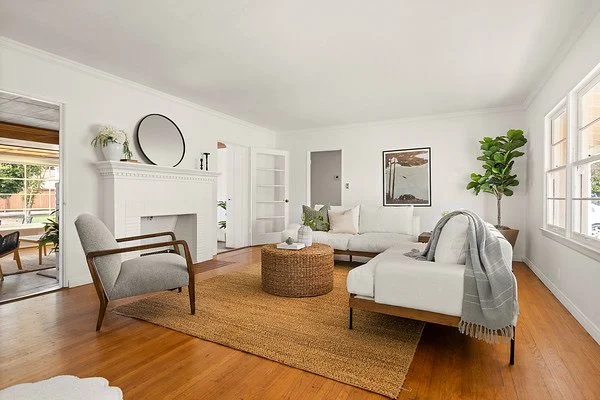 Living room after removing old carpet and thoughtful staging